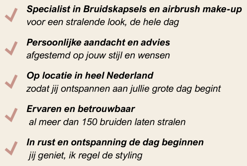Zo ben jij verzekerd van een bruidskapsel en bruidsmake-up die jouw de hele dag laten stralen,